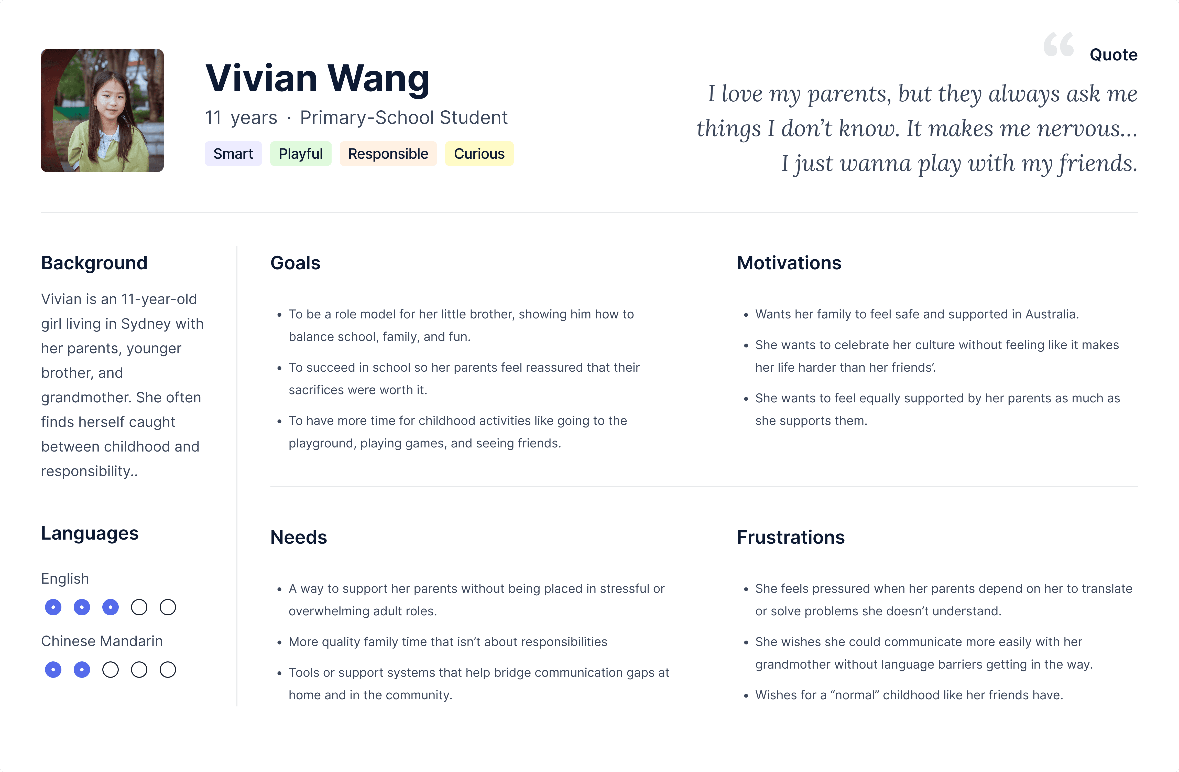 How might we redesign the way children support language and cultural mediation - so they feel proud and connected in everyday moments, while reducing their responsibility in high-stakes adult situations by empowering parents to take charge?