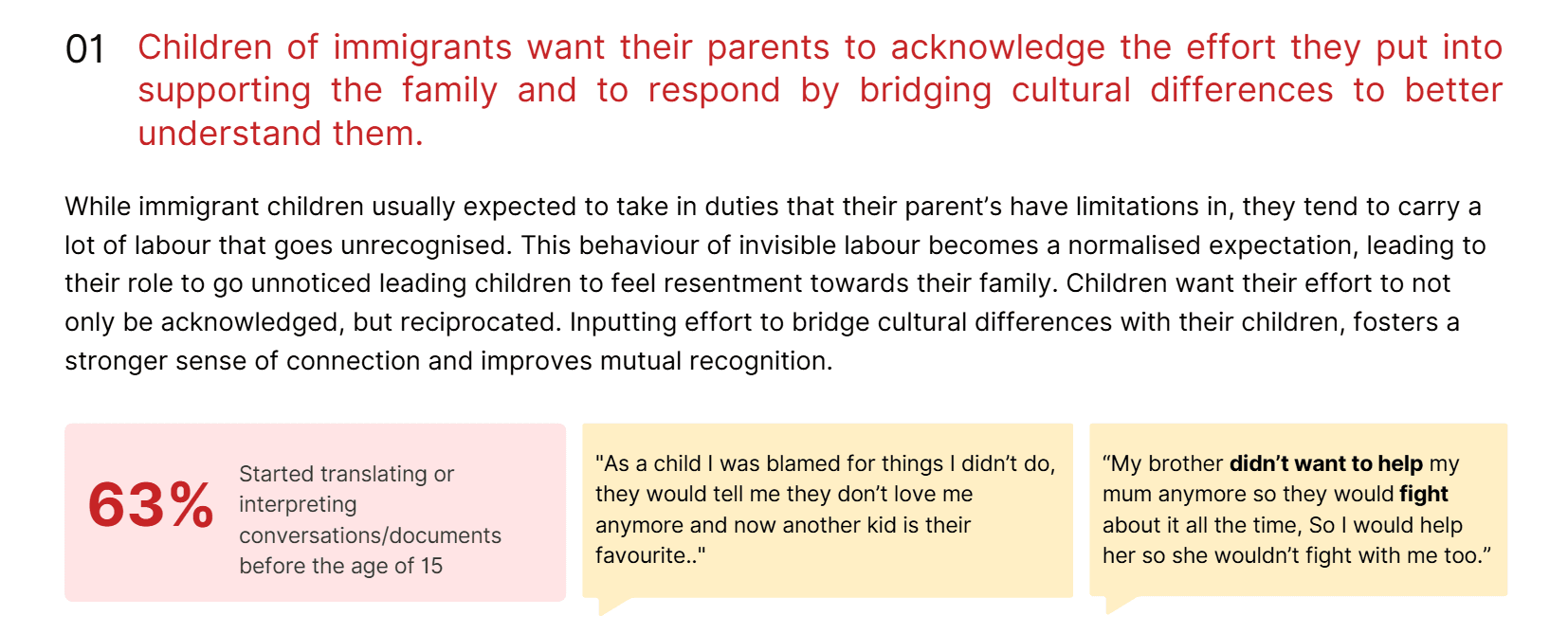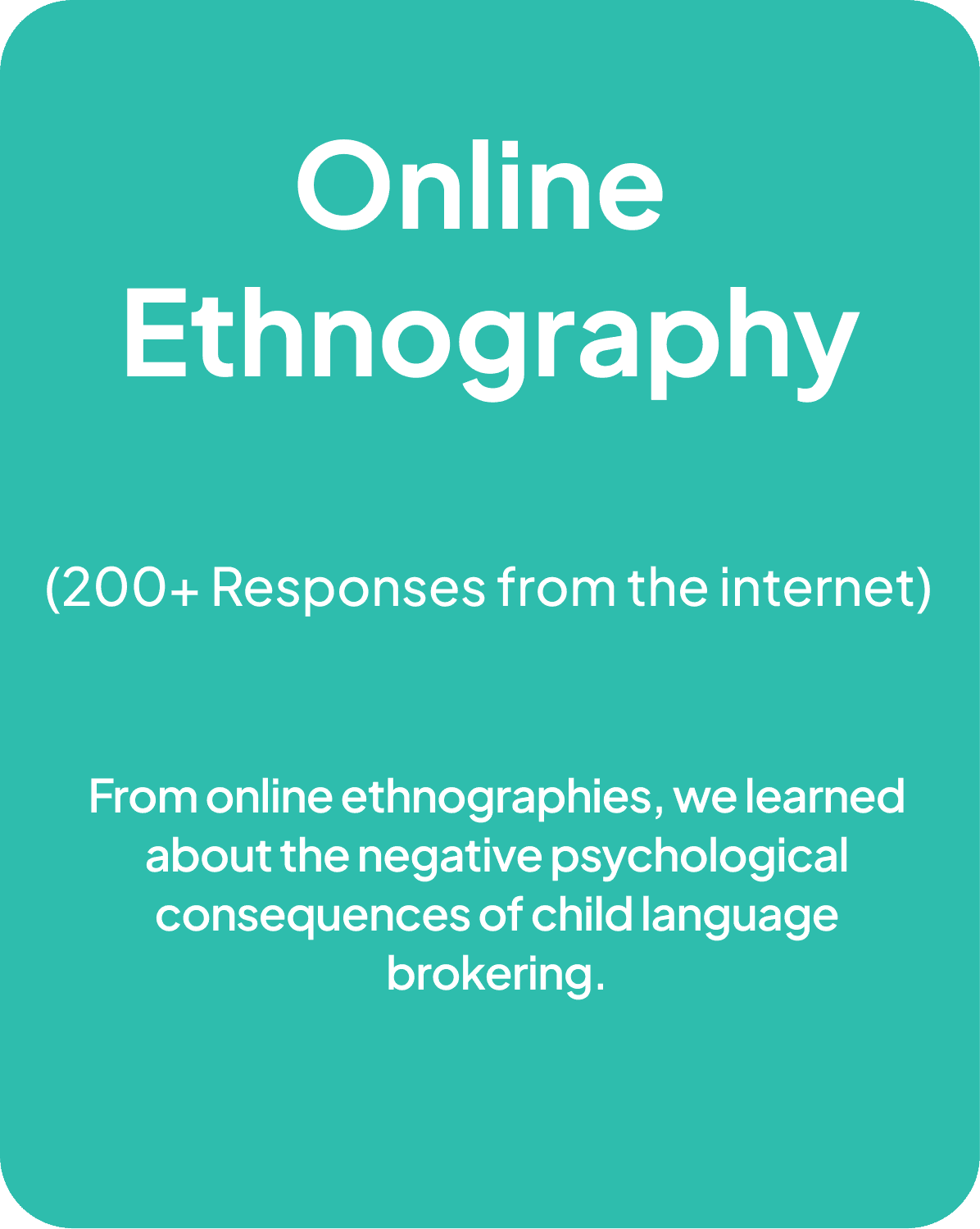 We set out to explore immigrant family transition struggles by diving into their experiences, hardships and perspectives through a triangulated primary research approach, including online surveys, interviews and an online ethnography:
