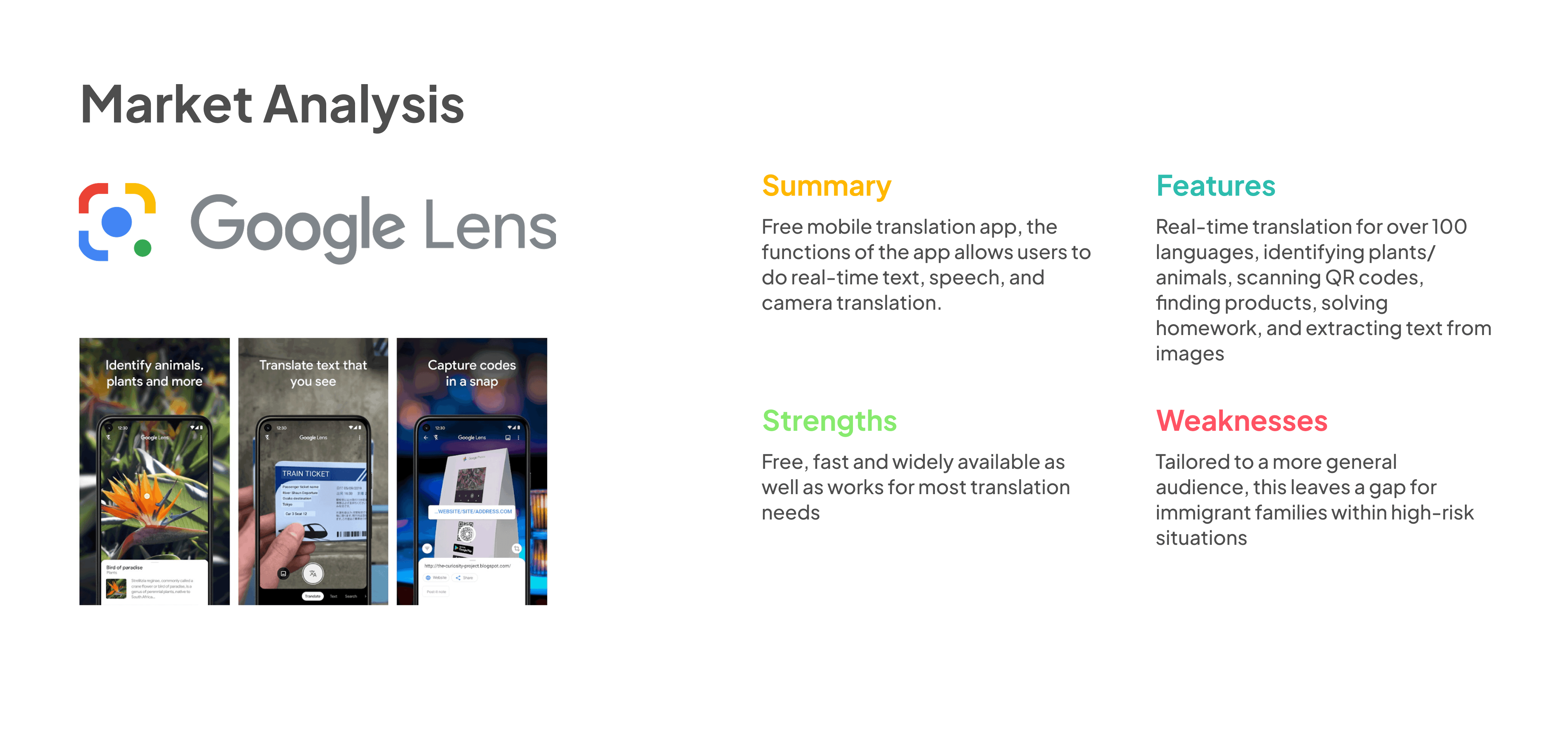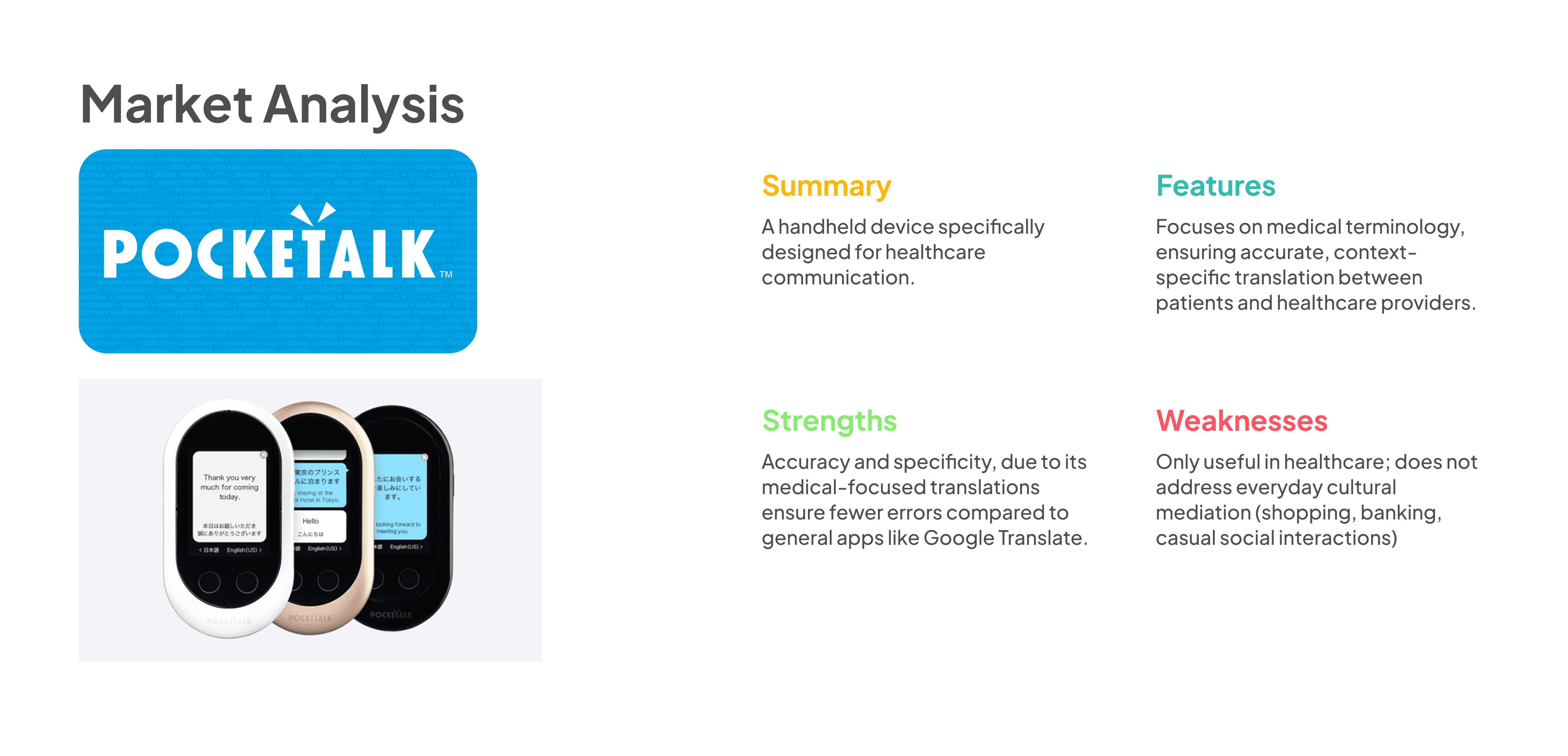We evaluated different types of existing solutions on the market, which helped us uncover opportunities and gaps for innovation.