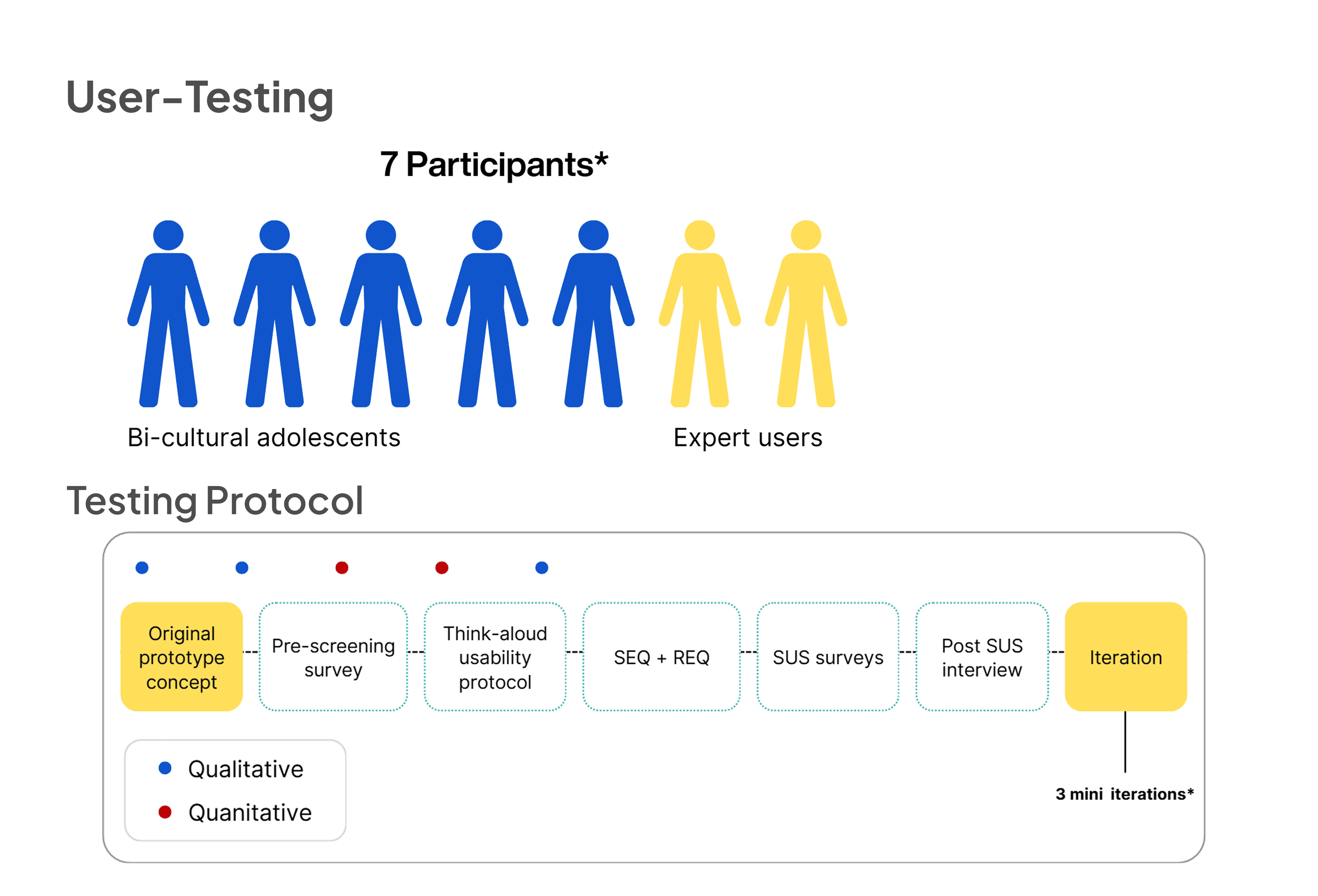 Our team conducted 3 rounds of testing, going from our initial low-fidelity to mid-fidelity and finally to high-fidelity prototypes.