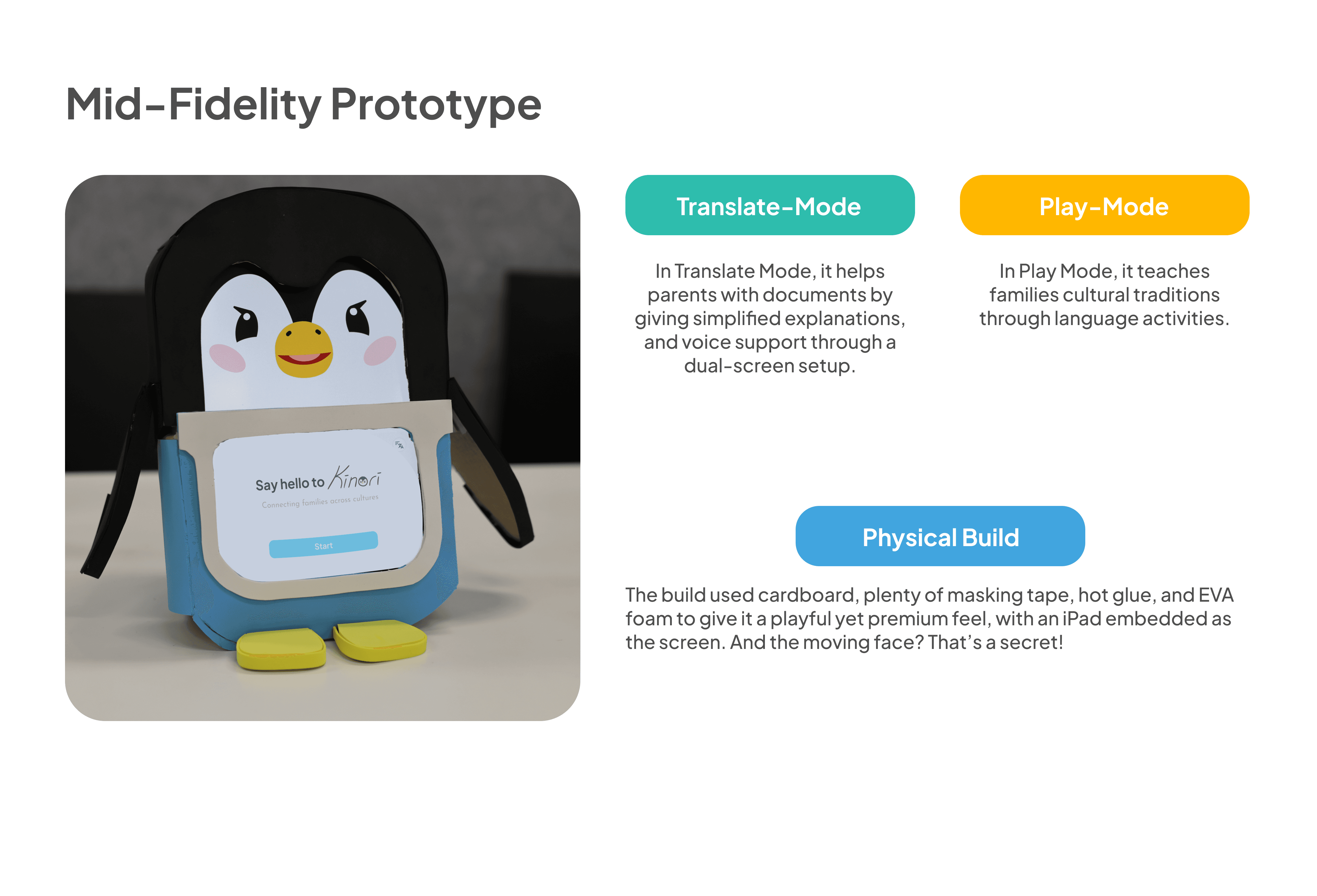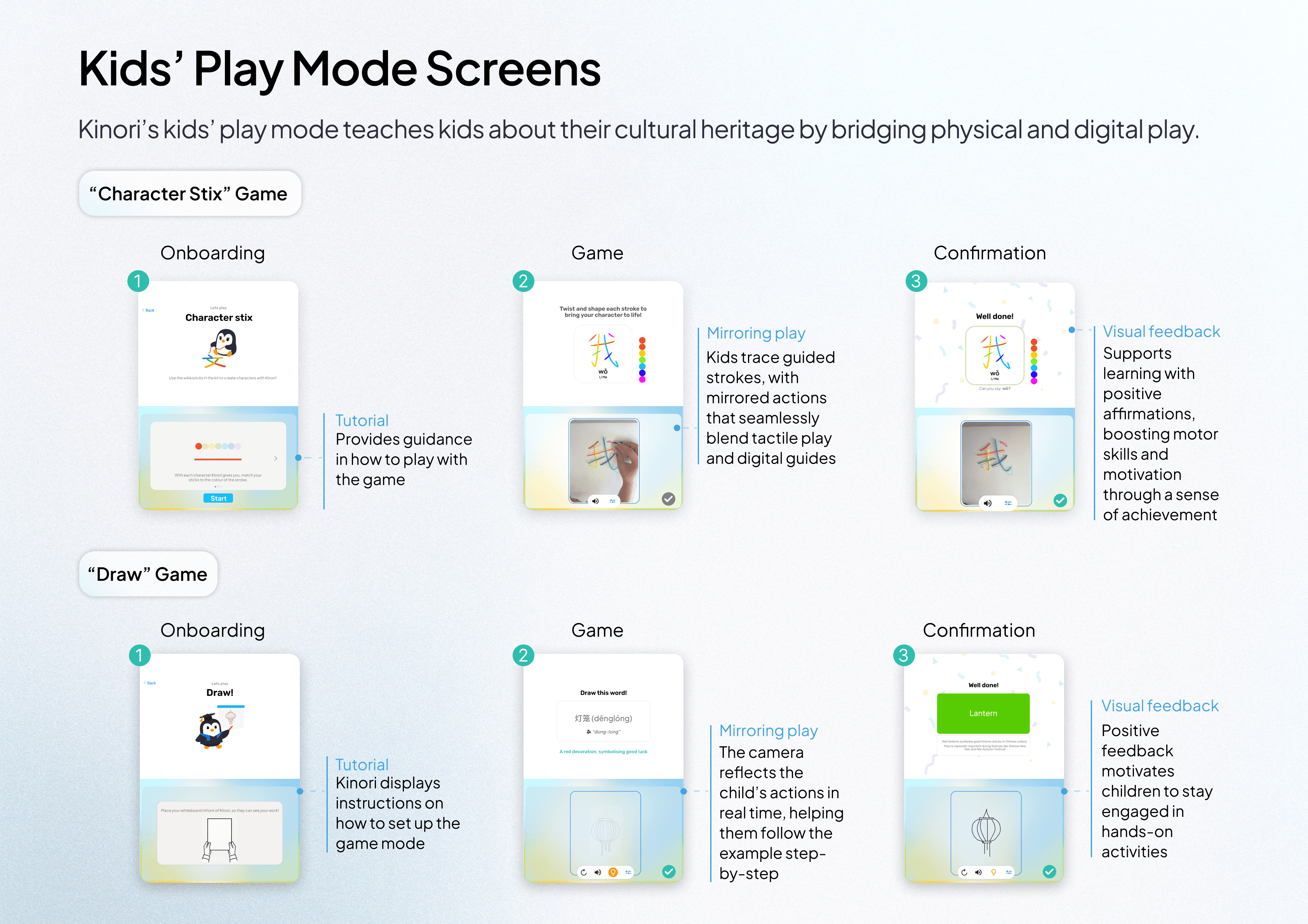 2️⃣Kids' Play Mode: Kids’ Play Mode combines digital and hands-on play. Kinori “watches” through its camera and responds to your children’s creations with the learning kit.
